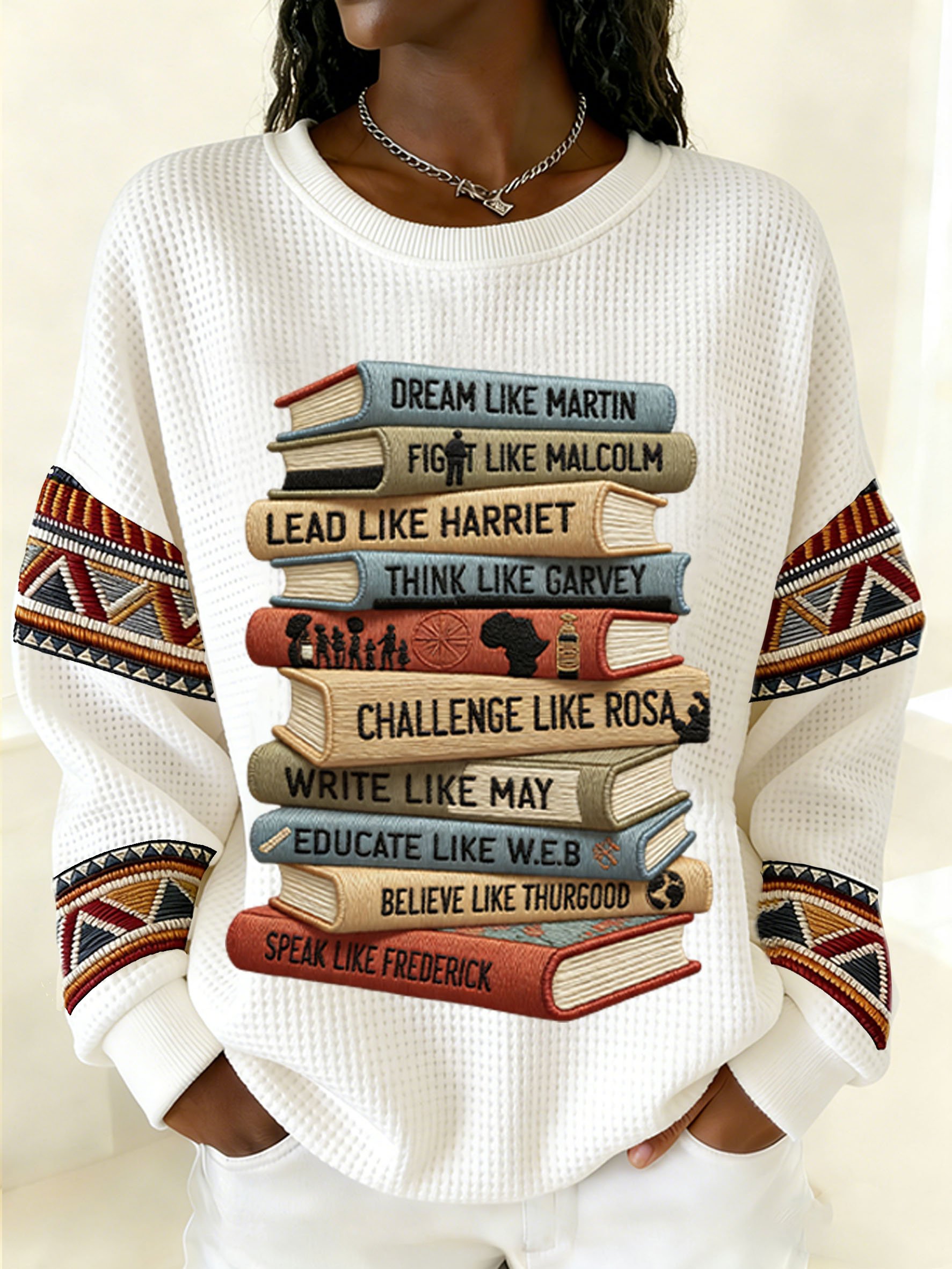 Women's Winter African American Inspirational Print Crew Neck Top