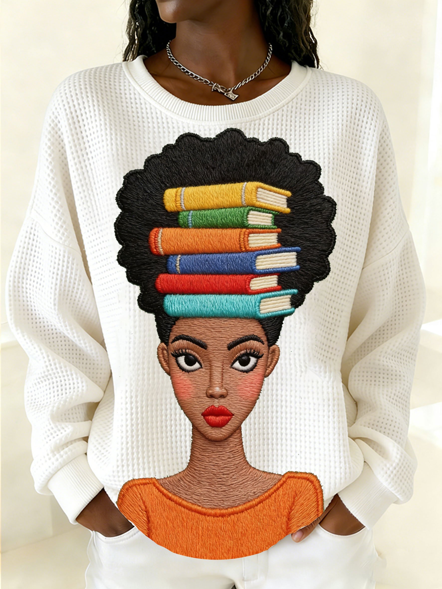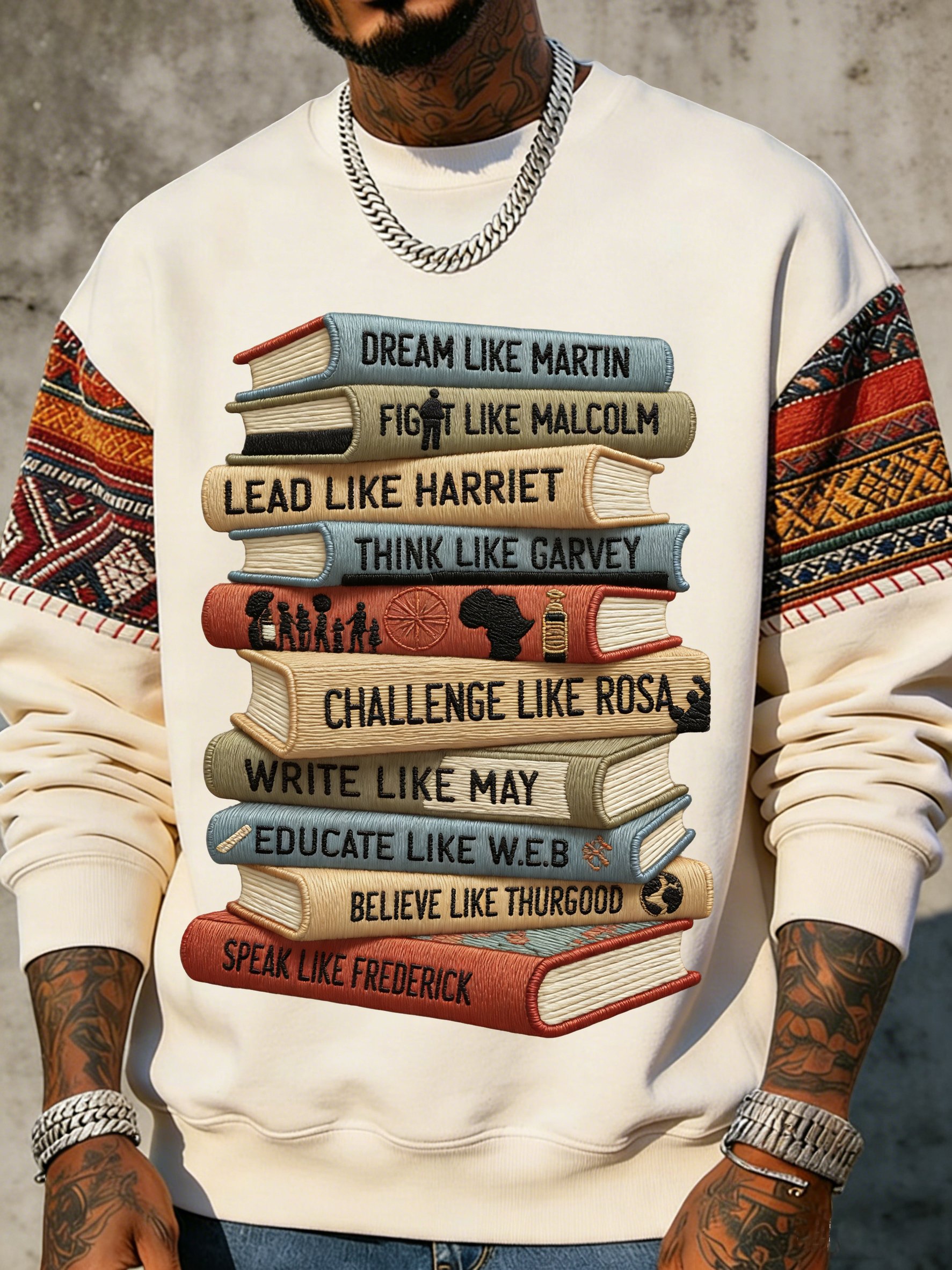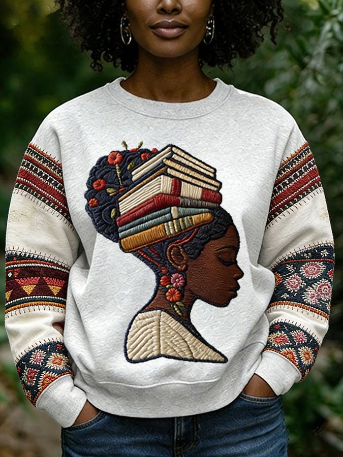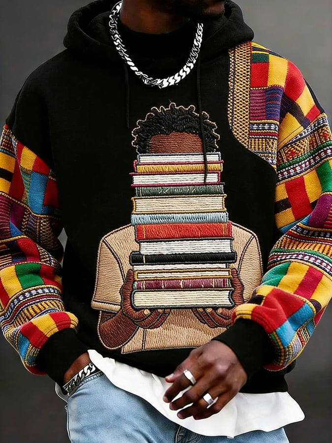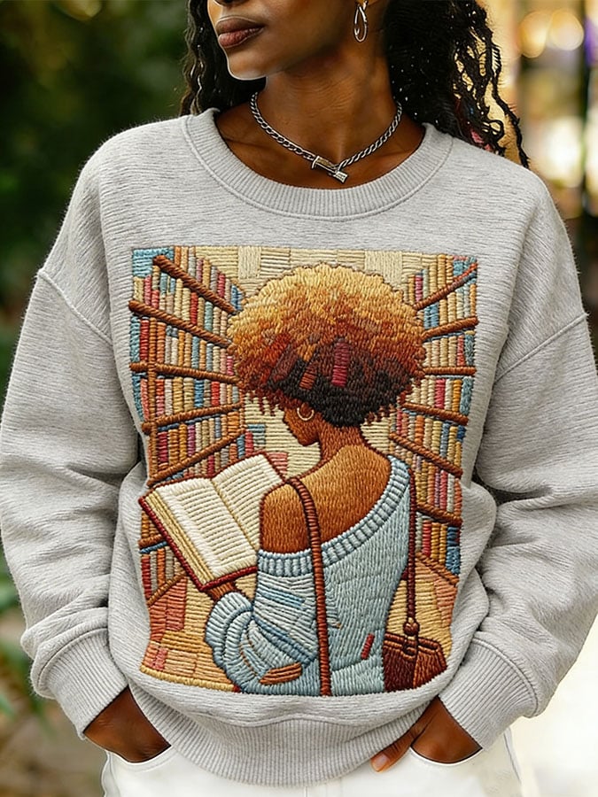 African American men's book-themed crewneck sweatshirt