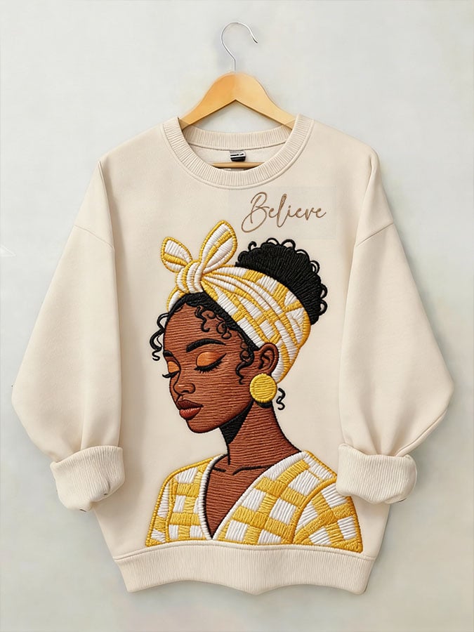 Women's Black Girl Art Print Casual Sweatshirt