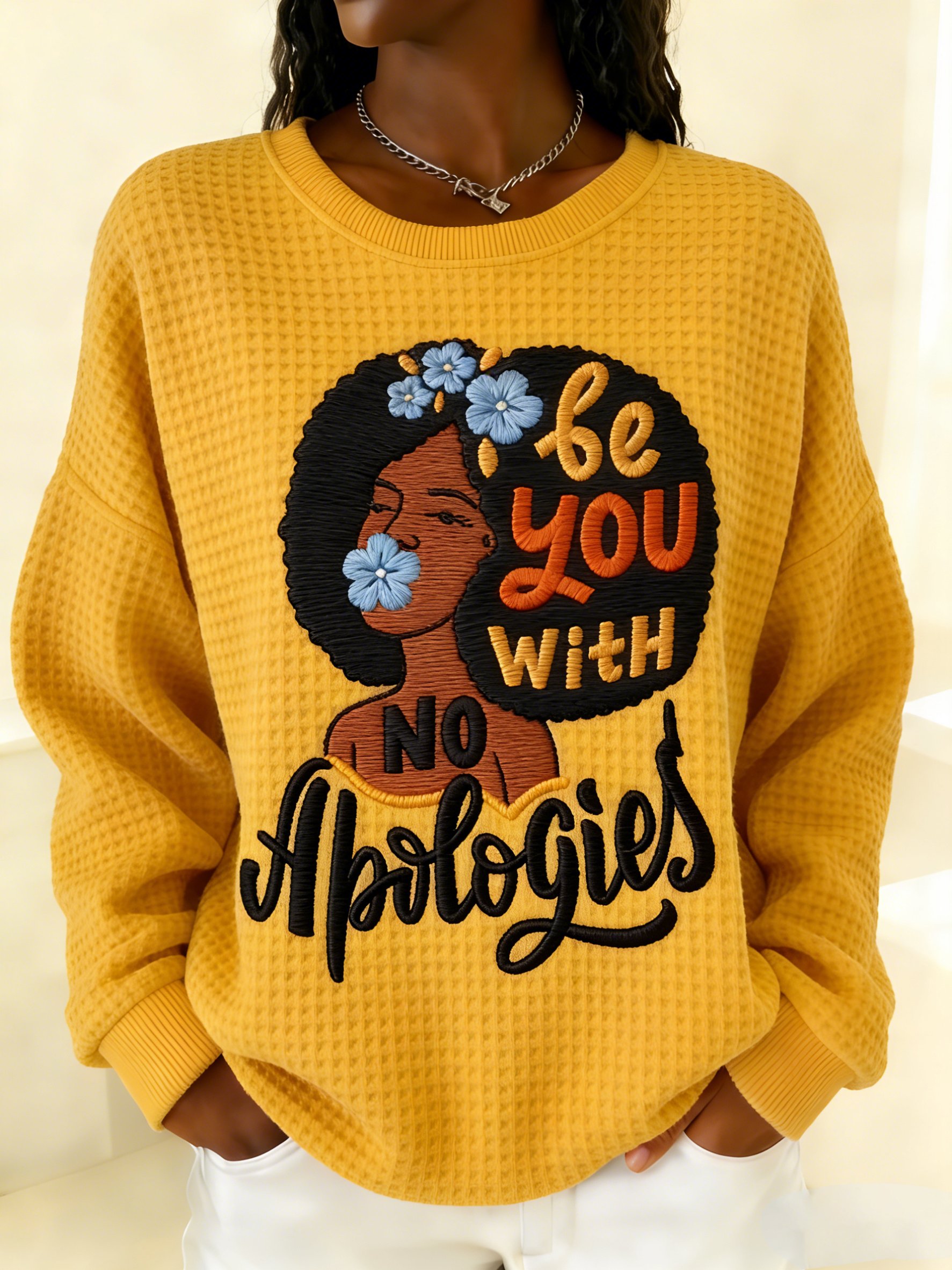 Women's African American Inspirational Print Hooded Waffle Knit Top