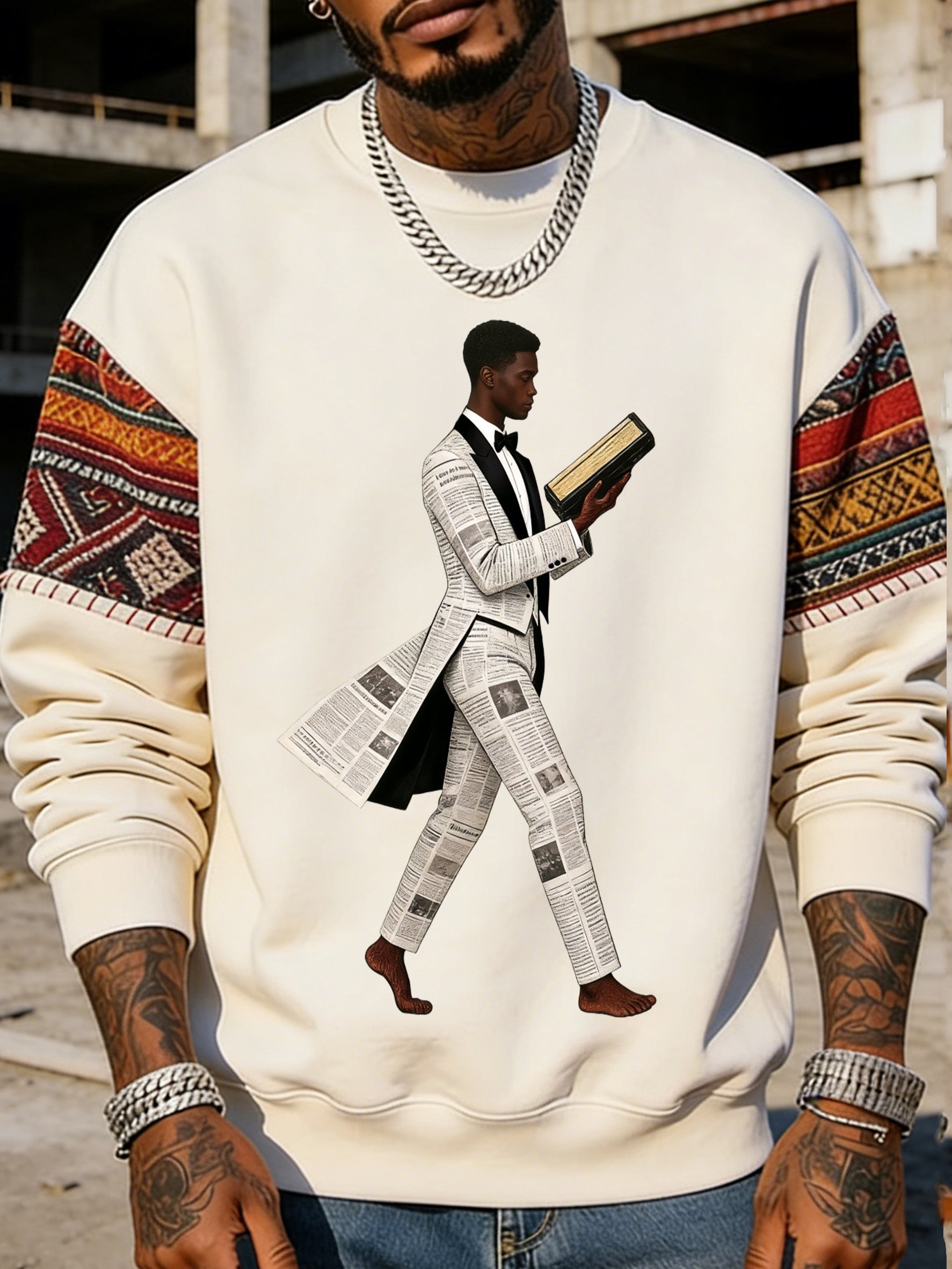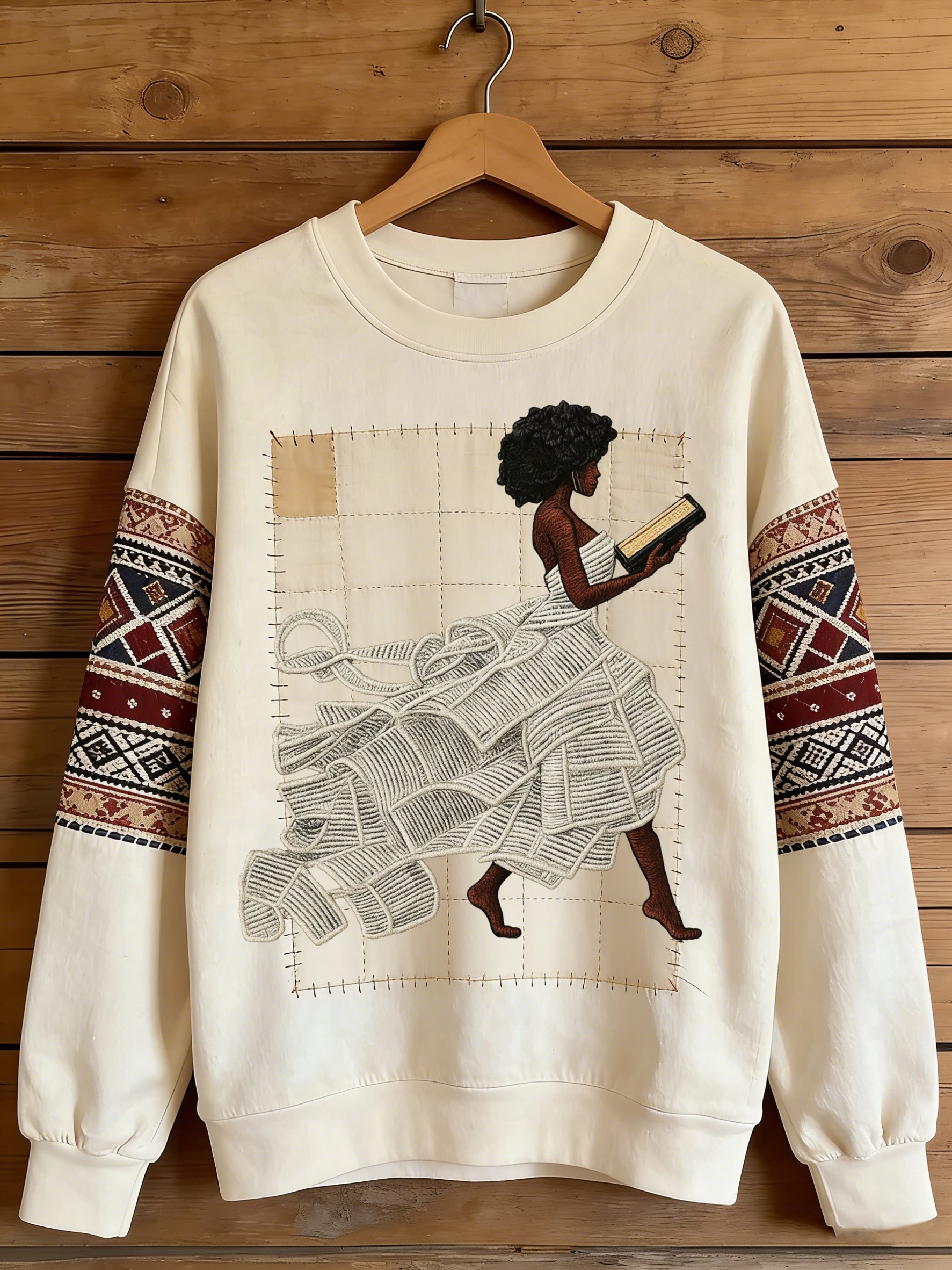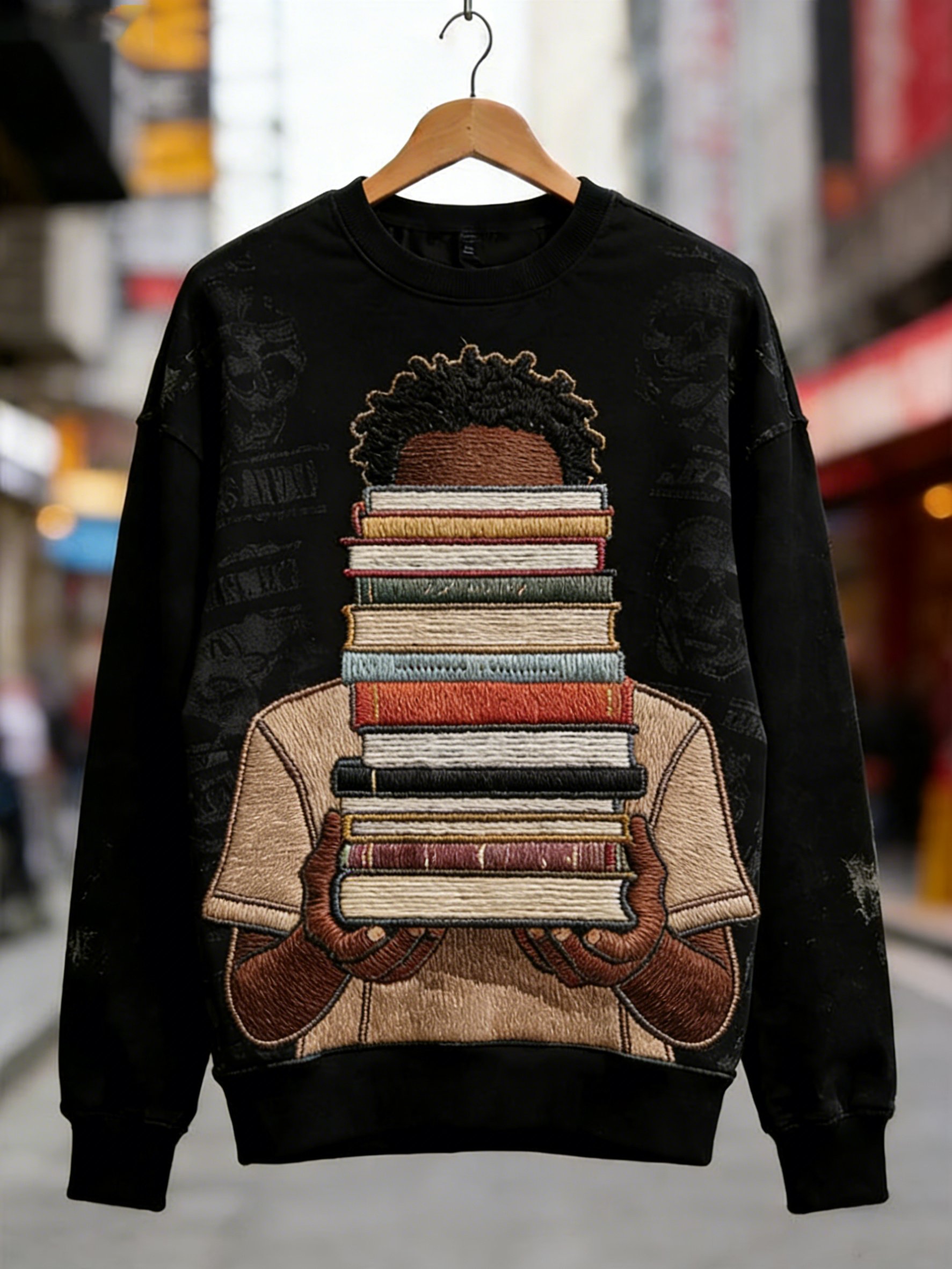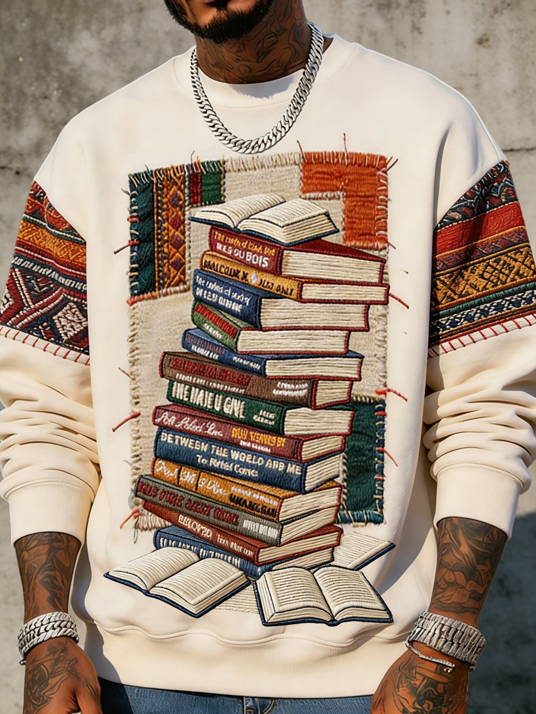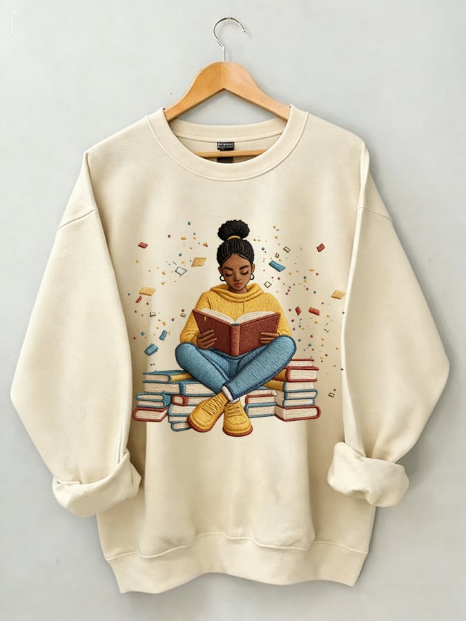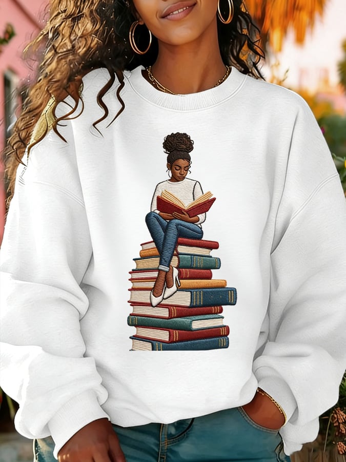 African American men's book-themed crewneck sweatshirt