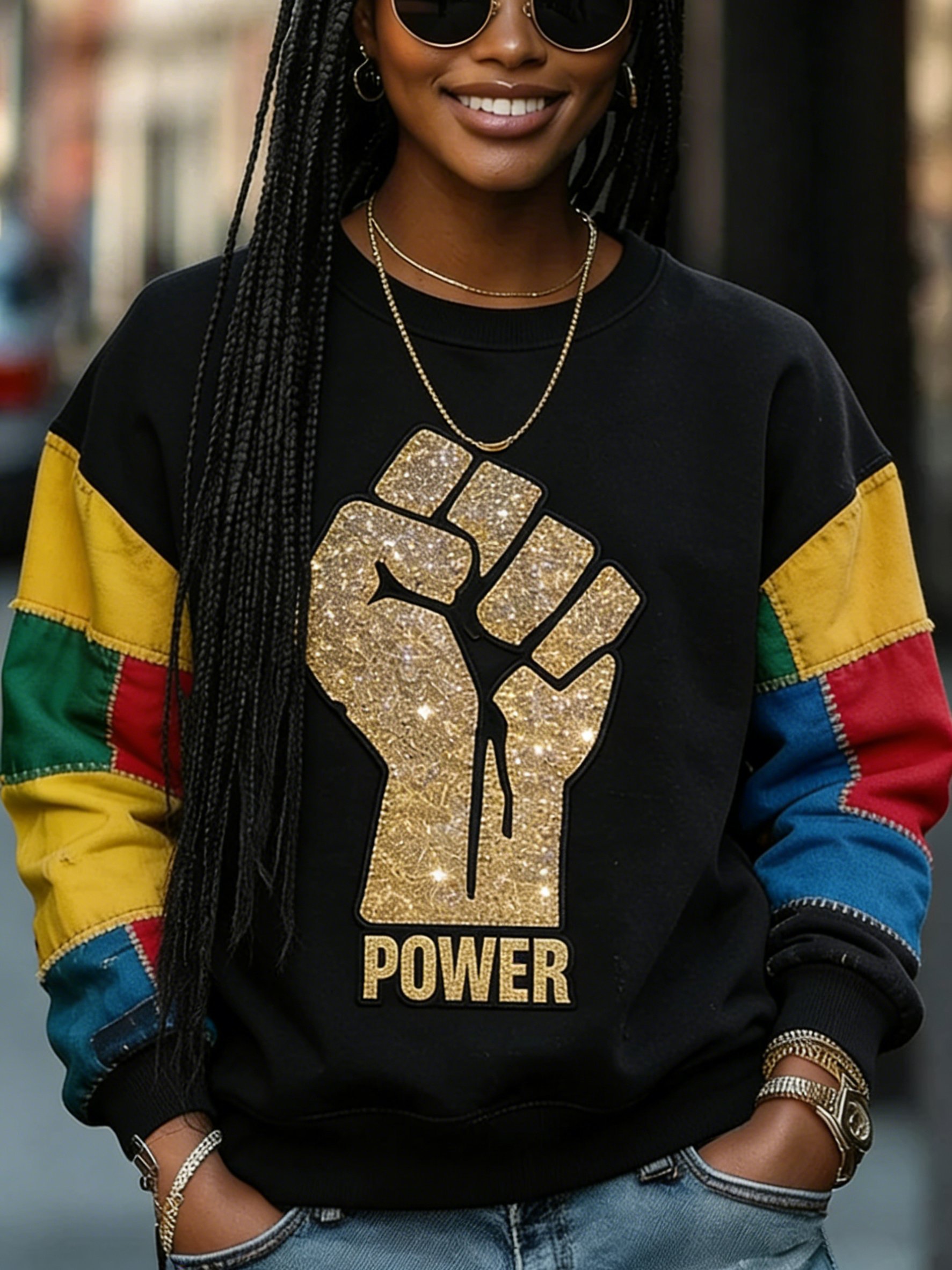 Women's Black Power Print Casual Sweatshirt