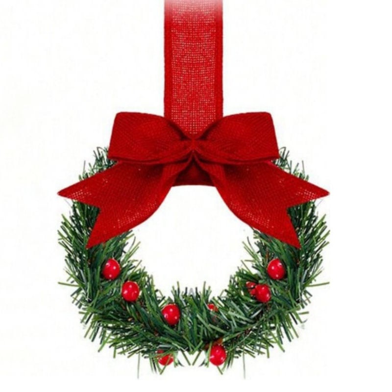 Features to Adore: Our small Christmas wreaths for kitchen cabinets come adorned with red ribbon bows adding an extra layer of festive charm; Easy to hang, these wreaths can quickly transform your space into a holiday haven; You'll also discover gifts hidden within the design, adding a lovely surprise element