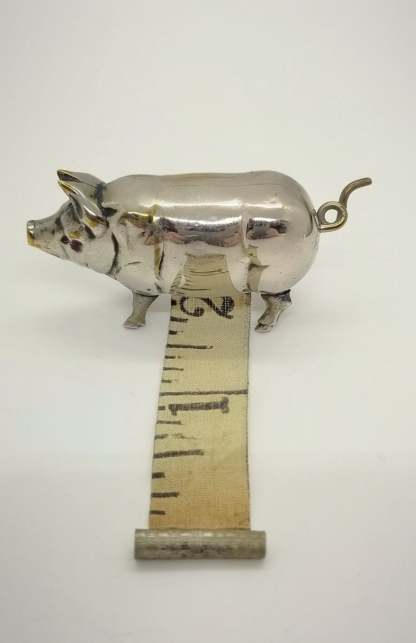 📏This vintage-inspired Figural Miniature Pig Tape Measure combines charming design with practicality, making it a delightful addition to your sewing kit! 🐖✨ Its antique nickel-plated brass finish adds a touch of retro elegance to your workspace.