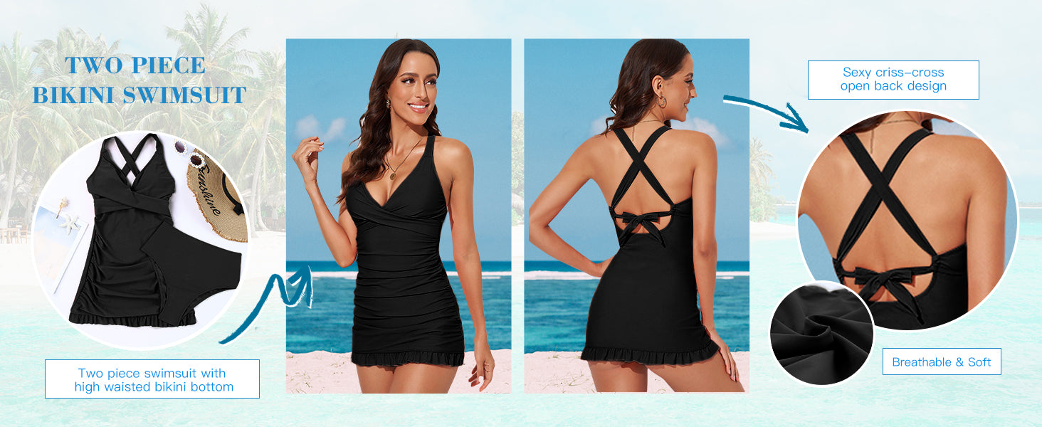 The cross-back straps provide excellent support and stability, ensuring a secure fit while allowing for freedom of movement.Ruched Detailing