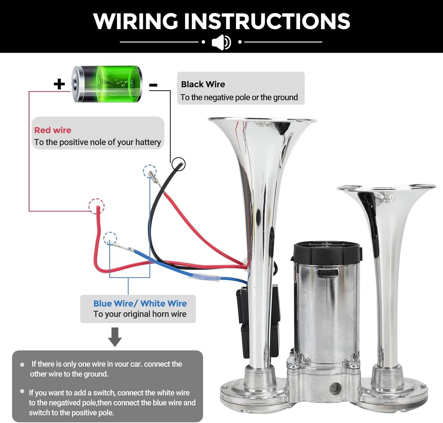 🔥LAST DAY 49% OFF - 🚗🔧2026 Upgraded 12V Dual Air Horn Kit – 130DB Super Loud Dual Horn with Compressor for Cars. Trucks. SUVs. Boats & More(✨Includes installation manual and video guide)