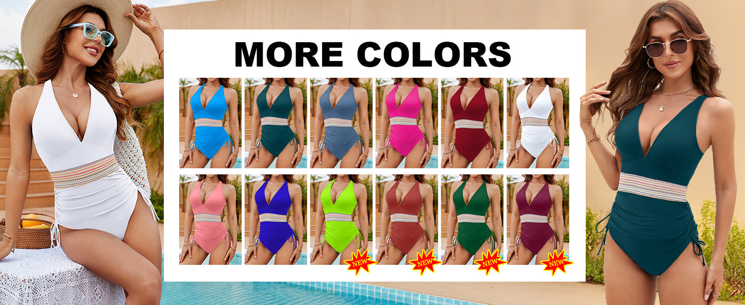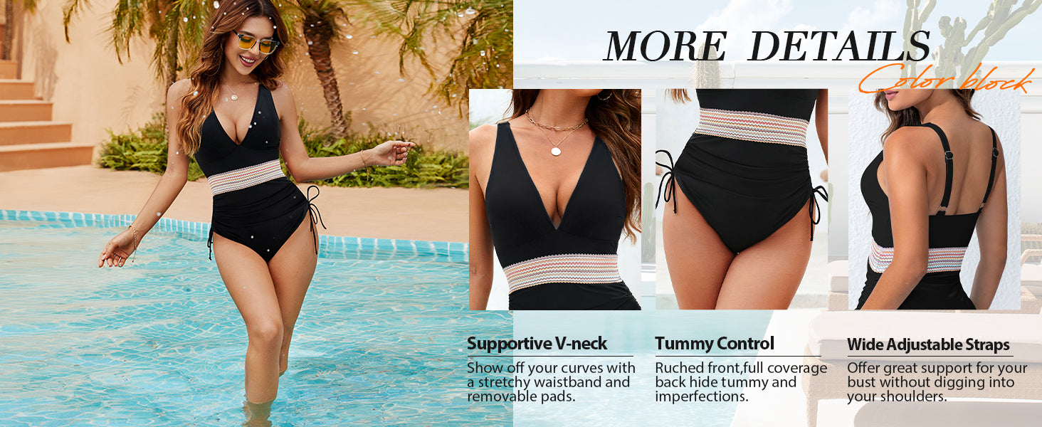 Chic Design: Drawstring detail, color-block panels, contrast trim, and a stylish v-neck 鈥?perfect for turning heads at the pool or beach.