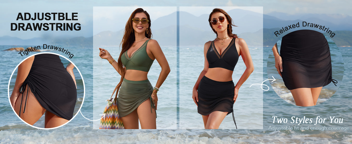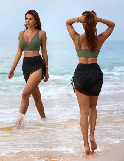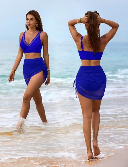 Womens Swim Skirt High Waisted Bikini Sets Tummy Control Swimsuits Mesh Sarong Wraps Bathing Suits