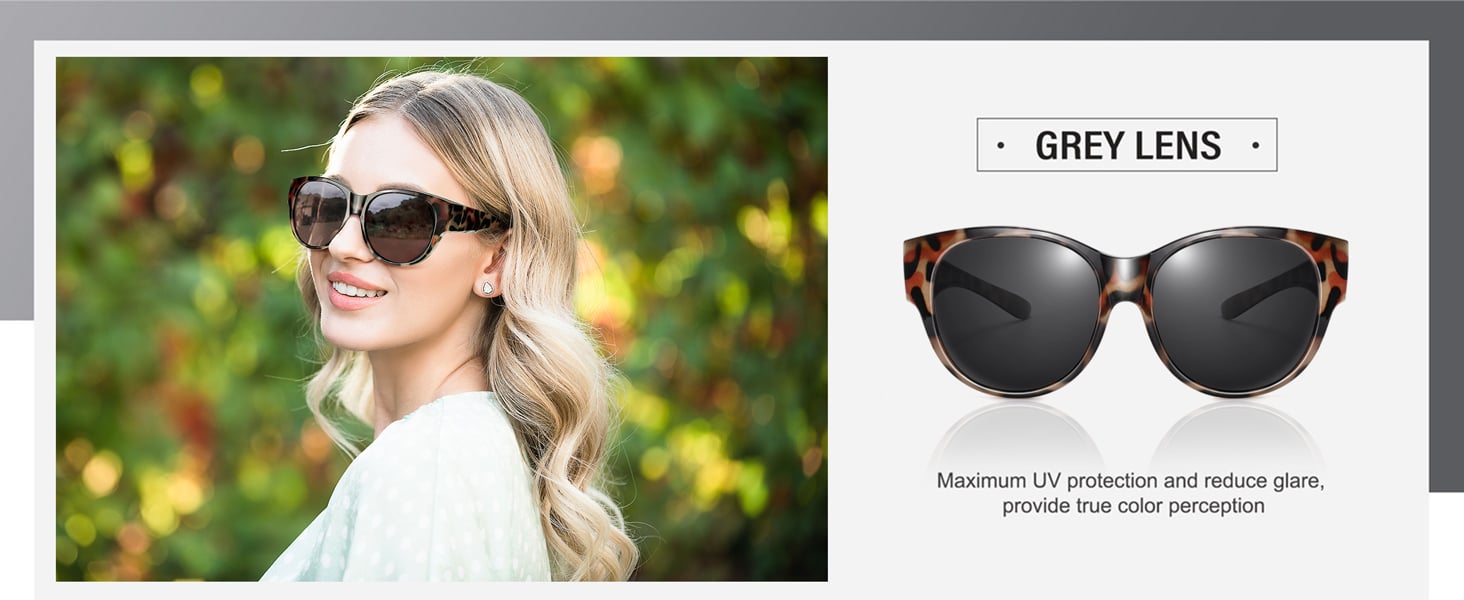 These polarized sunglasses are specially designed for those who wear prescription glasses, large frame and wide temples can well wrap your existing prescription glasses, people who wear contact lenses or with normal vision can also wear them alone