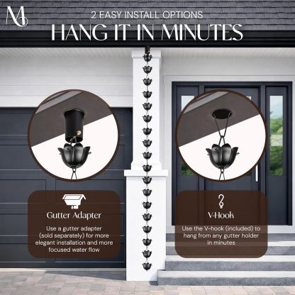 Even during heavy downpours, the wide cups ensure stable water flow. The chain is fully expandable—connect multiple sets to extend or remove links to shorten, making it a perfect fit for any gutter height.