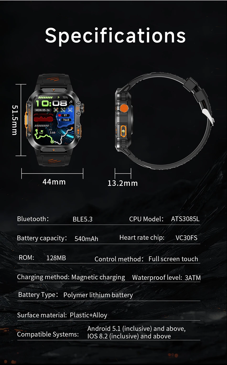 Athletes • Outdoor explorers • Travelers • Professionals • Anyone who wants power, durability, and smart control in one bold smartwatch