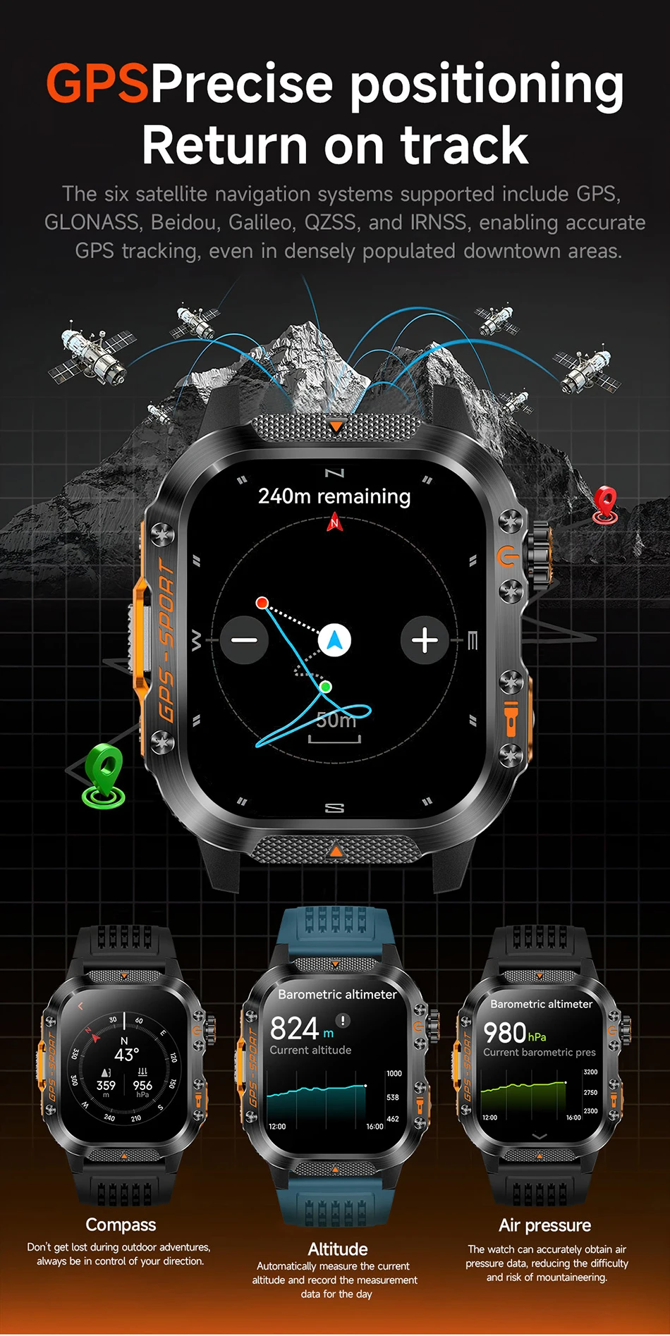 Navigate with confidence using multi-satellite GPS technology powered by 6 global positioning systems, including GPS, GLONASS, and Galileo. Track routes, distance, pace, and elevation with pinpoint accuracy — ideal for hiking, running, cycling, and outdoor exploration.