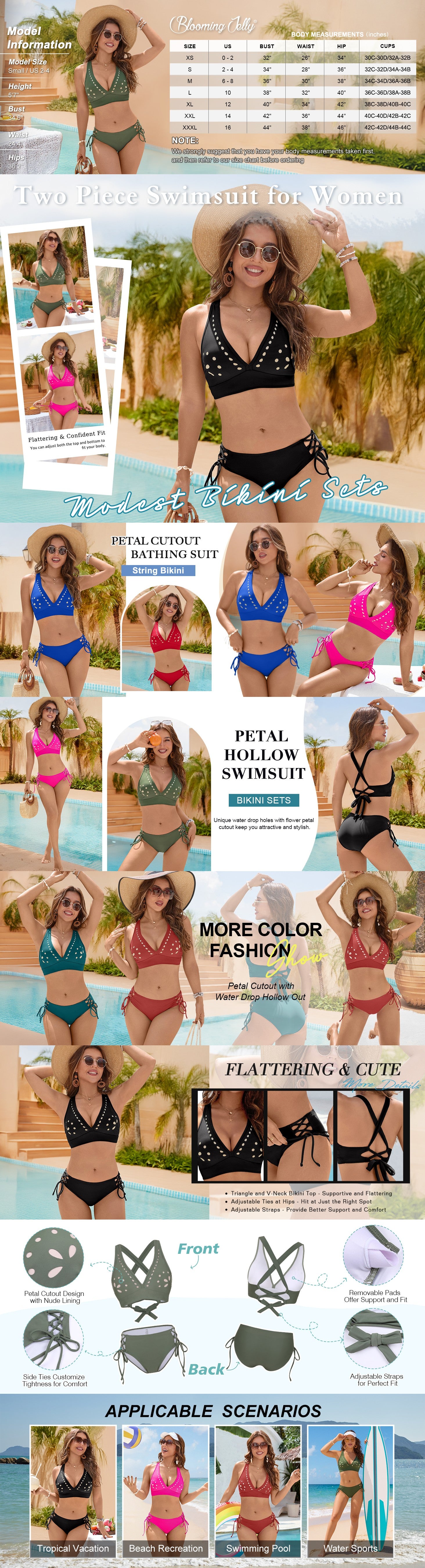 The deep V neckline enhances your natural curves, while the petal-inspired hollow details add a playful, feminine touch without overexposing.