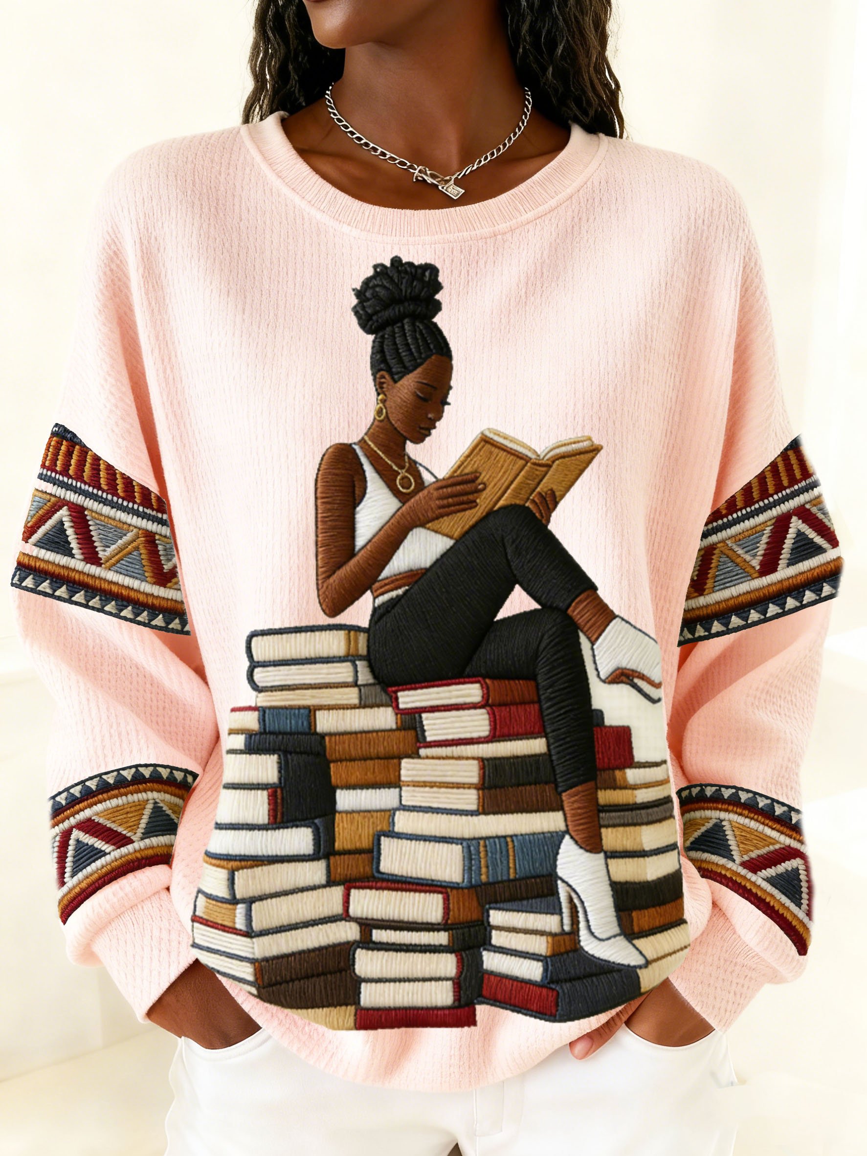 Women's African American woman, African American denim waffle-knit top