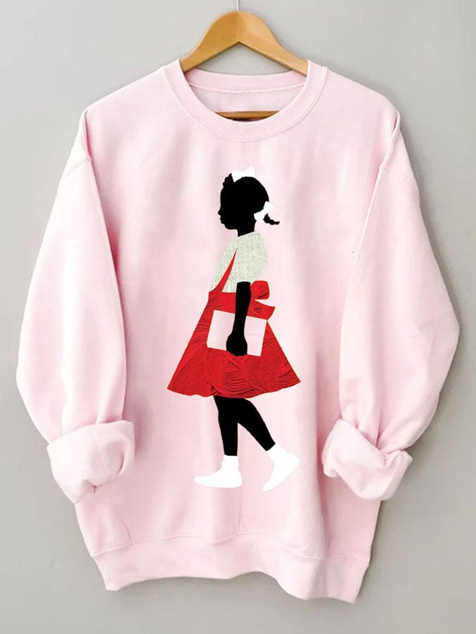 Women's Black Girl Art Print Casual Sweatshirt