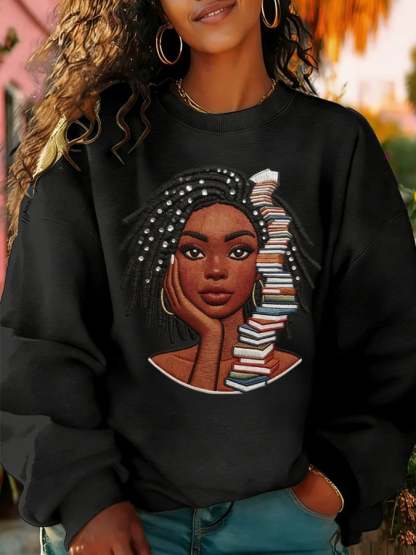 Women's Black Girl Art Print Hoodie