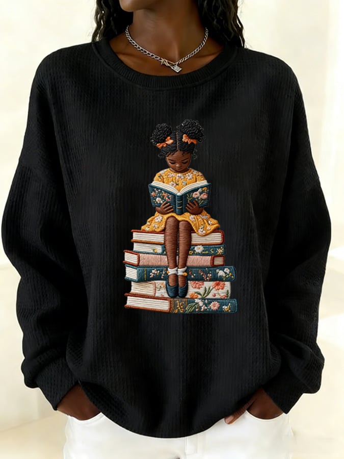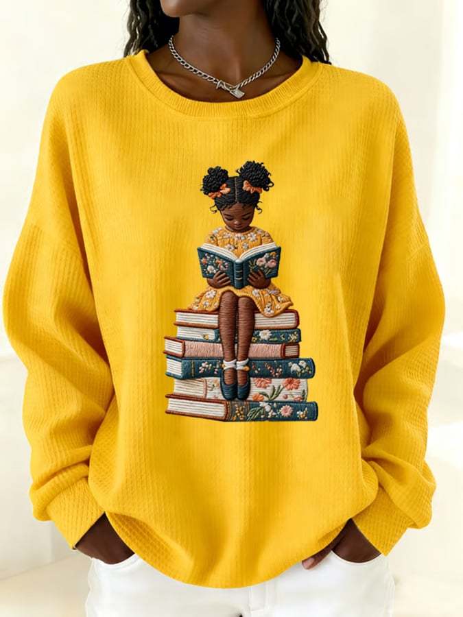 Women's Girl Women Book Lovers Black History print crew neck top